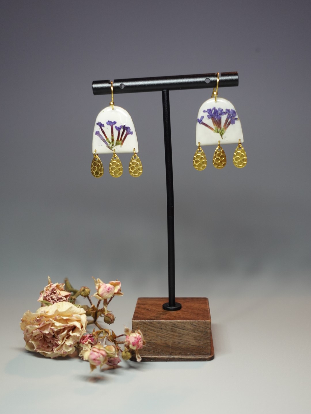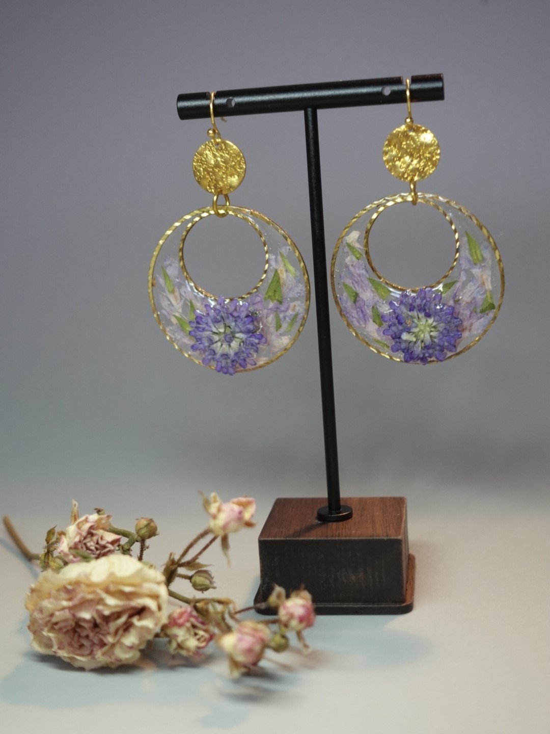 Nous utilisons des techniques de micro-crochet, de broderie de fil métallique, de résine UV, ainsi que des plantEs, FLEURS et pierres NATURELLES.
